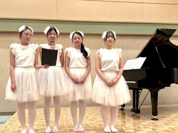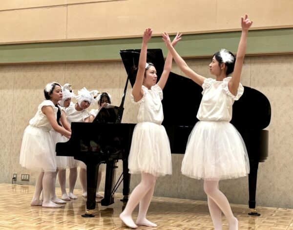 Mちゃん(高2)・Yちゃん(高2)・Hちゃん(高2)・Iちゃん(高1)・Kちゃん(中2)・Aちゃん(中1)の6人で連弾リレー『バレエdeリレー』を演奏してくれました。