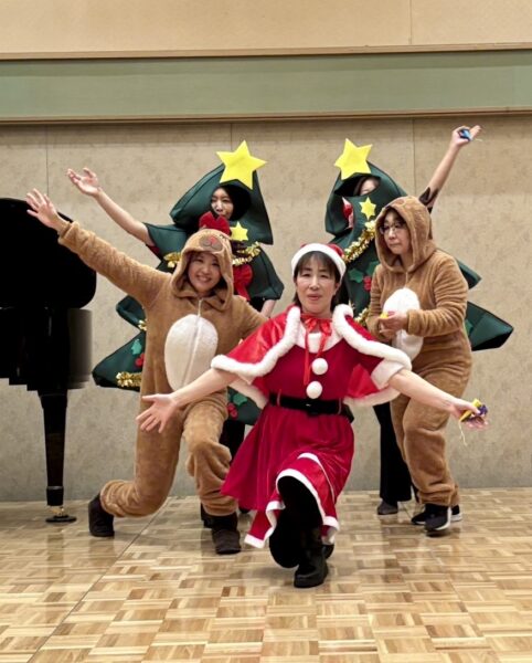 最後にはお母様方がクリスマスツリー・トナカイ・サンタクロースに扮してダンス隊で登場~☆