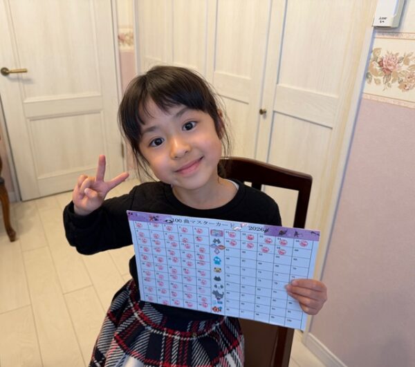 Kちゃん(年長)【100曲マスターカード・2026】50曲合格一番のりです![]()